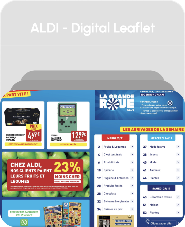 Le « Digital Leaflet » de ALDI est un projet conçu pour permettre aux clients d’avoir accès aux catalogues ALDI en numérique.