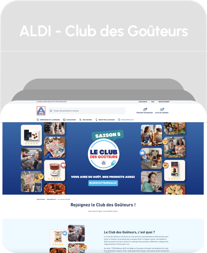 Le « Club des Goûteurs ALDI » est un club privé de consommateurs sélectionnés pour tester gratuitement des produits des marques ALDI chez eux. Les « goûteurs » reçoivent périodiquement selon la saison du club une box de produits (épicerie, alimentation, etc.) gratuite à domicile.